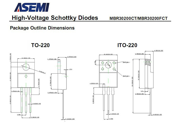 ASEMI肖特基二极管MBR30200FCT 中文资料参数介绍: