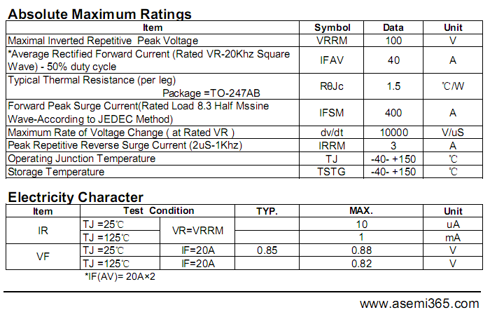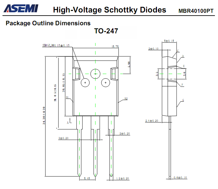 MBR40100PT肖特基二极管相关型号:MBR4060PT、MBR40150PT、MBR40200PT
