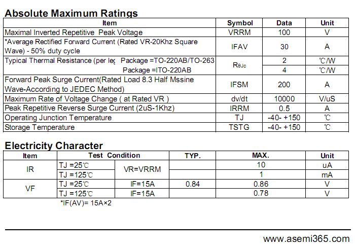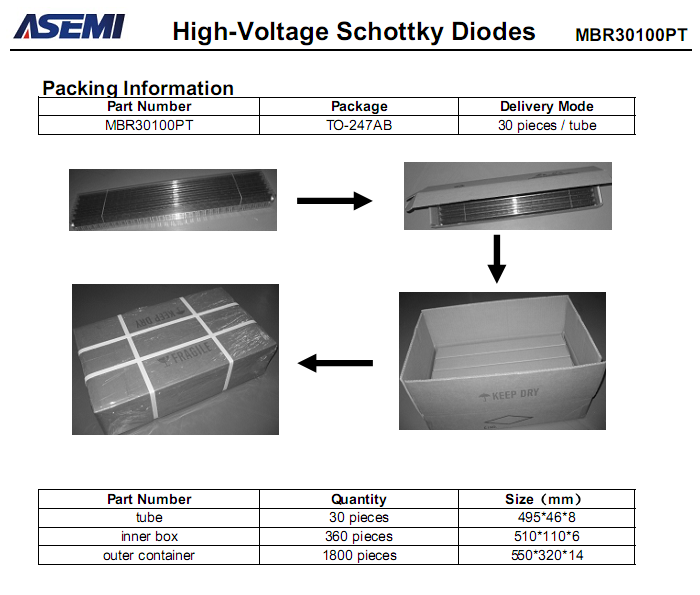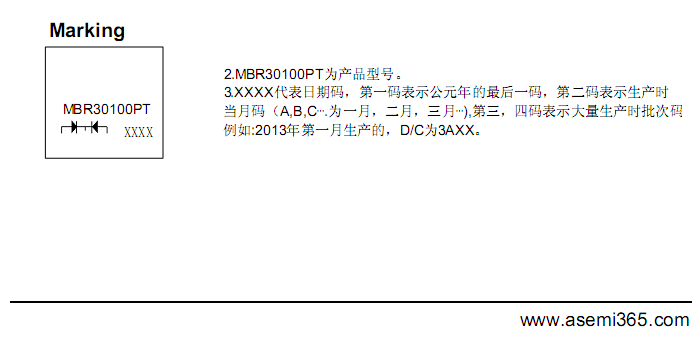 MBR30100PT肖特基二极管相关型号:MBR30150PT、MBR30200PT、MBR3060PT