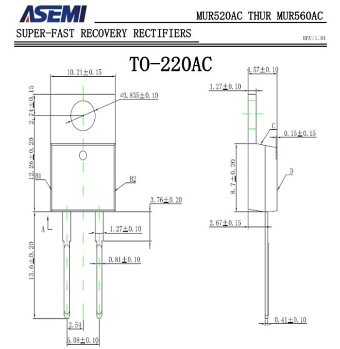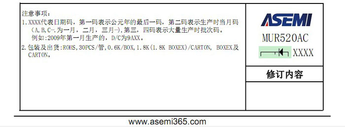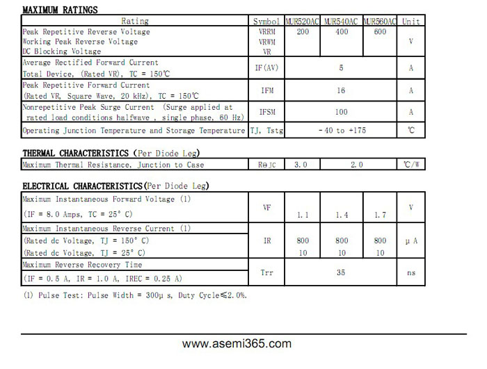 ASEMI超快恢复二极管MURF520AC 中文资料参数介绍: