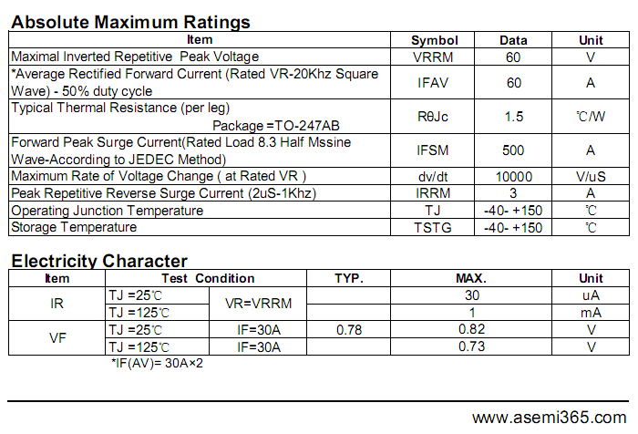 MBR6060PT肖特基相关型号:MBR60200PT、MBR60100PT、MBR60150PT