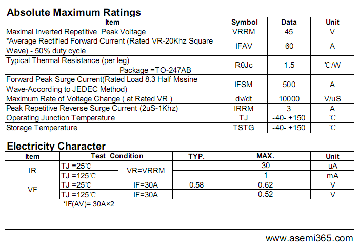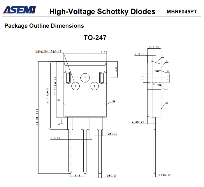 MBR6045PT肖特基相关型号:MBR6060PT、MBR60100PT、MBR60150PT