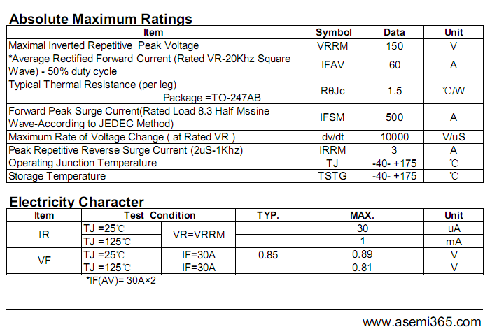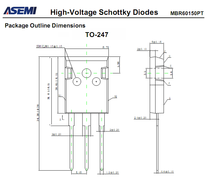 MBR60150PT肖特基相关型号:MBR60100PT、MBR60200PT、MBR6060PT