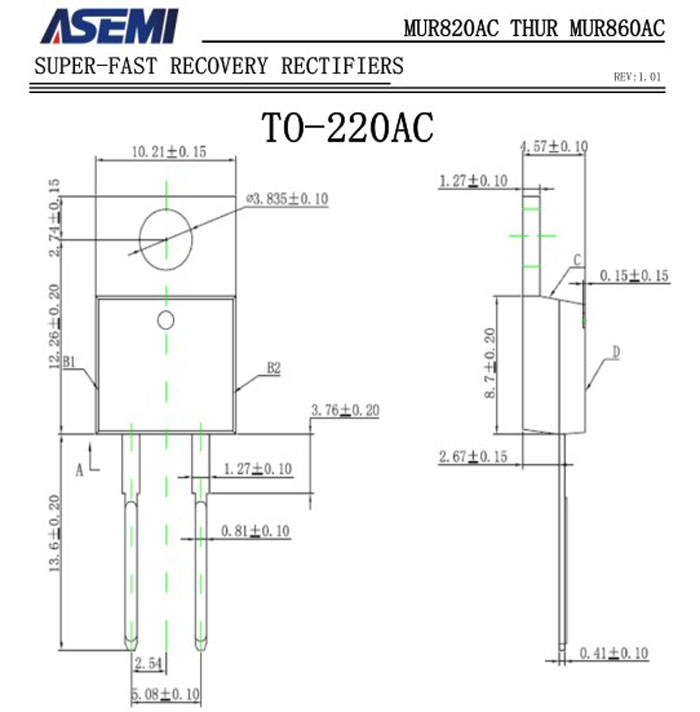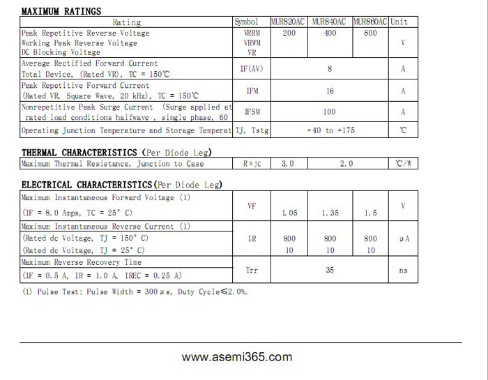 ASEMI超快恢复二极管MURF840AC 中文资料参数介绍: