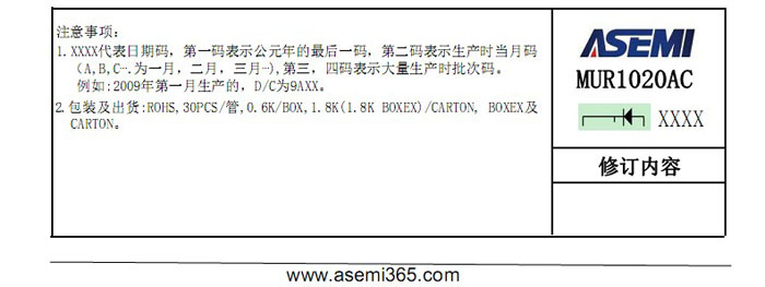 ASEMI超快恢复二极管MURF1020AC 中文资料参数介绍: