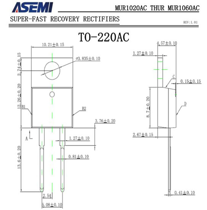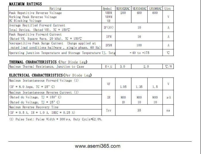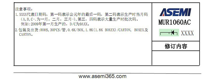 ASEMI超快恢复二极管MURF1060AC 中文资料参数介绍: