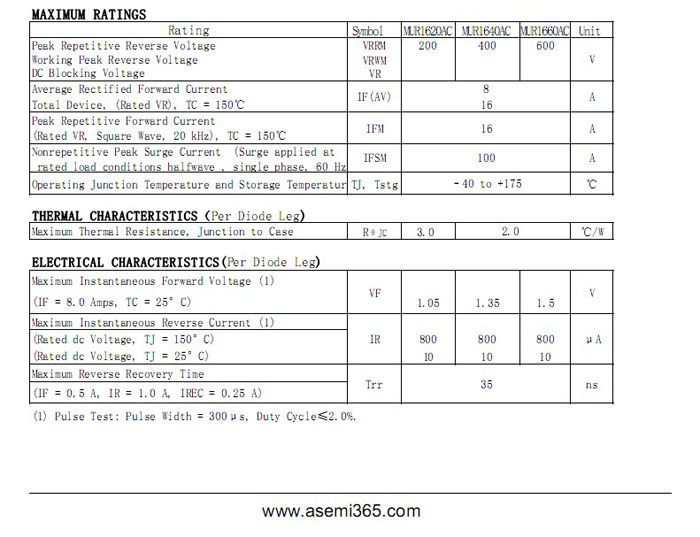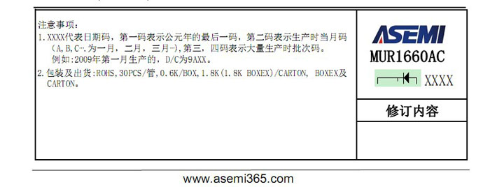 ASEMI超快恢复二极管MURF1660AC 中文资料参数介绍: