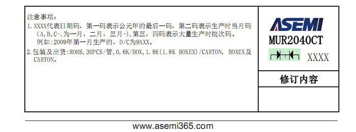 ASEMI超快恢复二极管MURF2040CT 中文资料参数介绍: