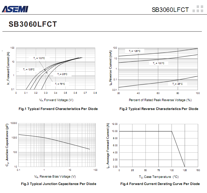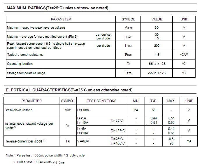 SB3060LFCT正向压降Vf :0.44V