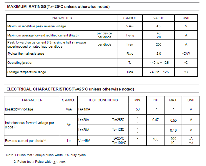 SB4045LCT TO-220 低压降肖特基二极管 PDF资料