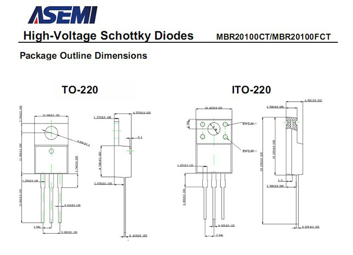 MBR20100CT封装形式:TO-220/TO-220F/ITO-220