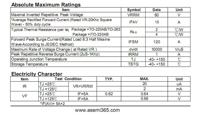 MBR1060CT ITO-220AB肖特基二极管PDF资料