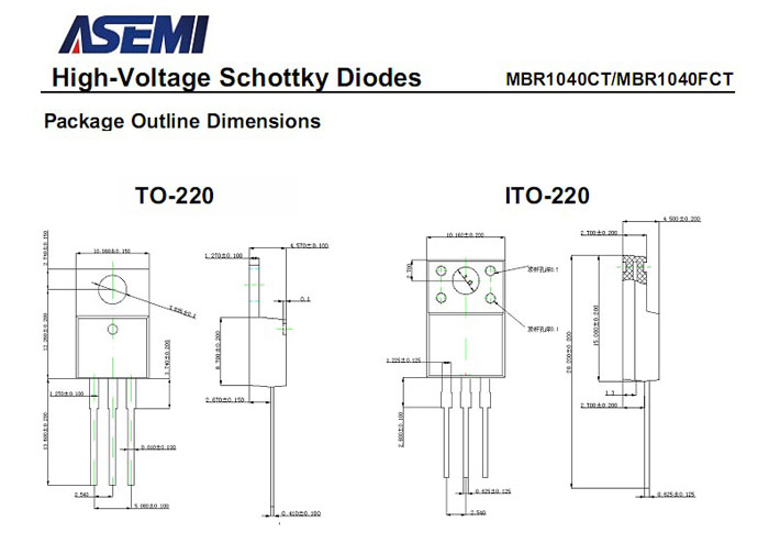 MBR1040CT封装形式:TO-220/TO-220F/ITO-220