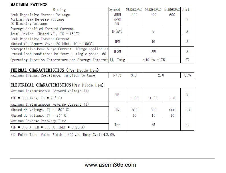 MURF560AC,MUR820AC,MUR840AC,MUR860AC,MURF820AC,