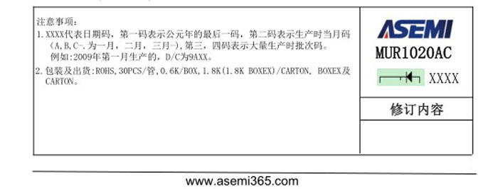 MUR1020AC封装形式:TO-220/TO-220F/ITO-220