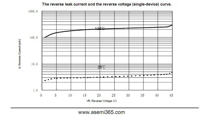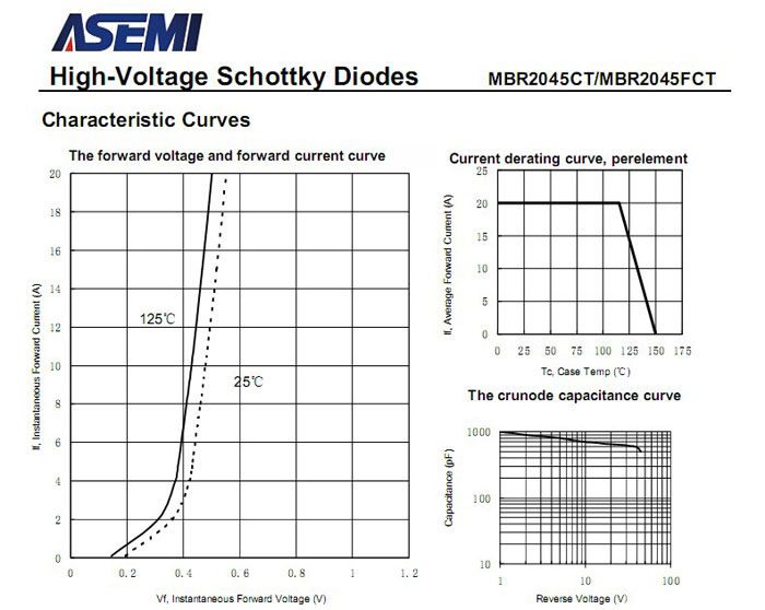 ASEMI肖特基二极管MBR2045FCT 中文资料参数介绍: