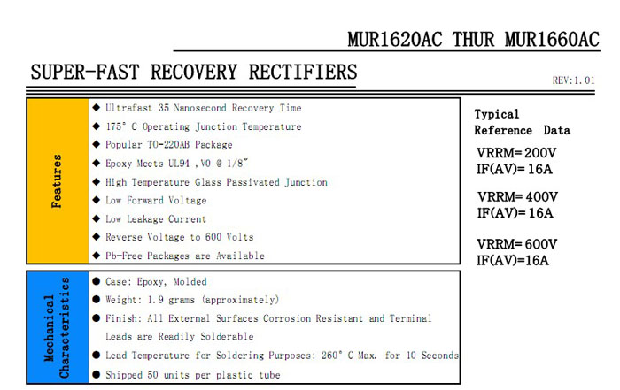 ASEMI超快恢复二极管MURF1660AC 中文资料参数介绍:
