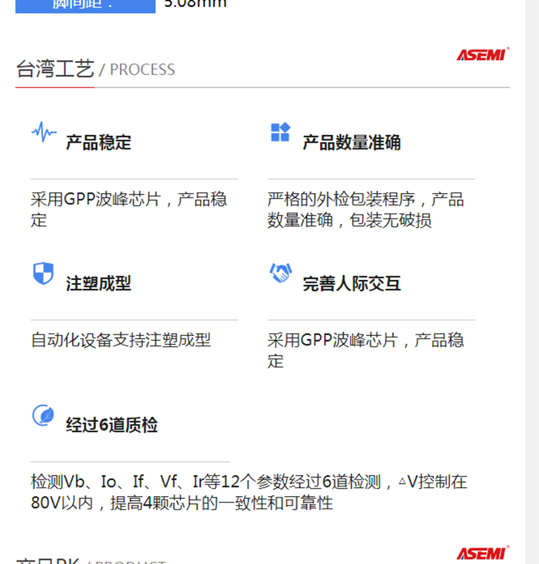 产品名称:SF1004A ASEMI低压降快恢复二极管