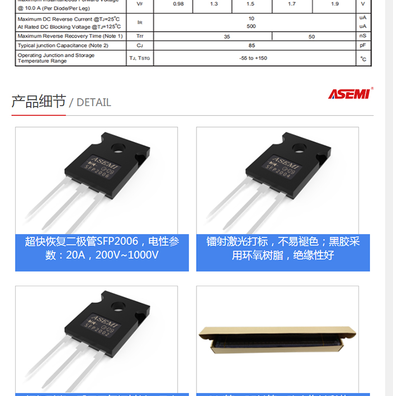 此文关键词:SFP2006 ASEMI首芯 超快恢复二极管 ASEMI品牌原厂原装SFP2006